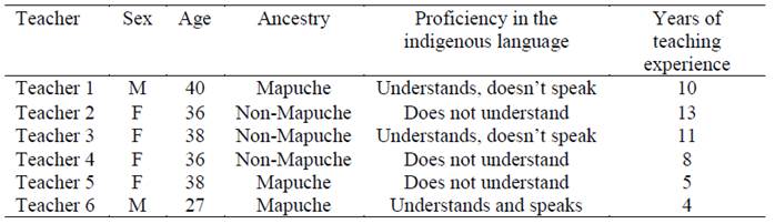 El contexto del estudio se sitúa en La Araucanía en escuelas multinivel situadas en comunidades mapuches rurales de Padre Las Casas (Arias-Ortega, 2020). Los participantes del estudio son seis profesores, descritos en la Tabla 1.