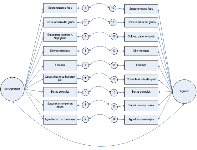 Figura 1: Modelo a poner a prueba del Cuestionario de Agresores-Víctimas de Olweus para niños