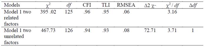 Confirmatory factor analysis was then carried out. A two-unrelated-factor model was also tested.