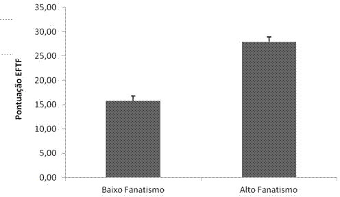 Figura 2: Média dos grupos de alto e baixo fanatismo, considerando a pontuação na escala EFTF