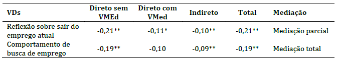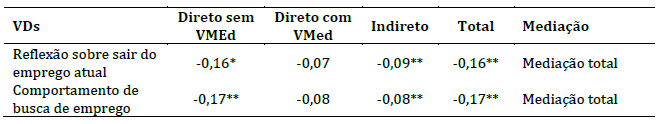 Nota: VDs: Variáveis dependentes; VMed: Variável Mediadora.