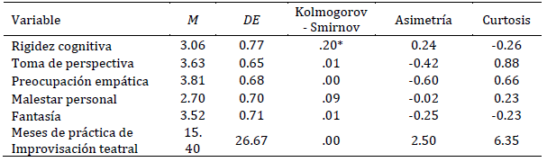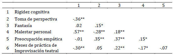 Rigidez cognitiva y tiempo de práctica de improvisación teatral como predictores de las dimensiones de la empatía