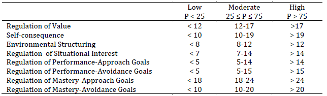 Finally, statistical norms were calculated to enable the interpretation of dimension scores in applied settings. In this vein, education professionals who wish to use this tool can administer the MRSQ, interpret its scores, and then make decisions aimed at improving students’ learning processes.