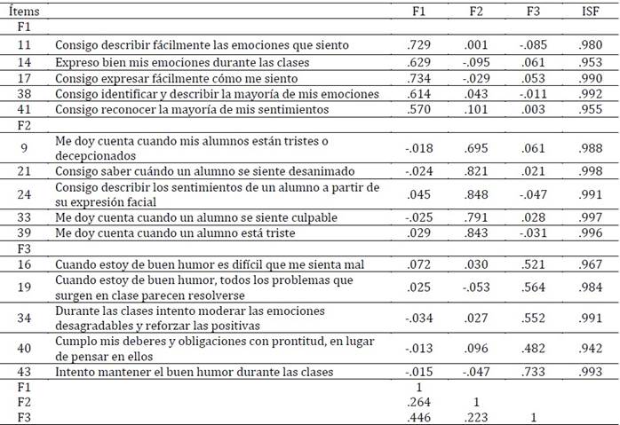 F3: Gestionar y regular las emociones; ISF: Índice de simplicidad factorial.
