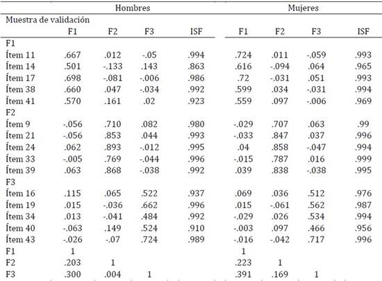 Tabla 1: Análisis ESEM en hombres y mujeres