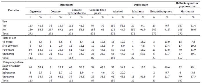 We had access to the users' admission form, the medical and psychological medical records, and the interventions carried out by the social work staff to collect the information on psychoactive substance use required for this research.