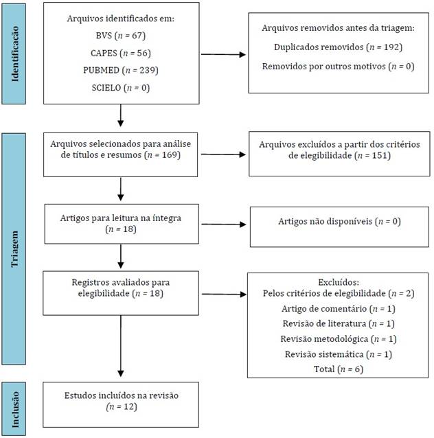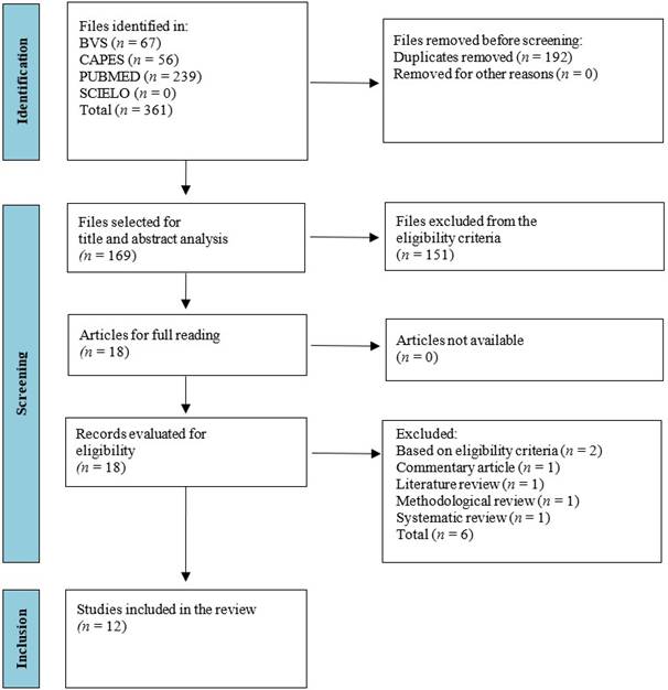The research was conducted in the Virtual Health Library (BVS) and PubMed databases, as well as the Scientific Electronic Library Online (SciELO) and the Journal Portal of the Coordination for the Improvement of Higher Education Personnel (CAPES) portals, with the aim of identifying empirical articles. Data collection took place between the beginning of August and October 18, 2023. Filters were applied to select publications between 2018 and 2023.