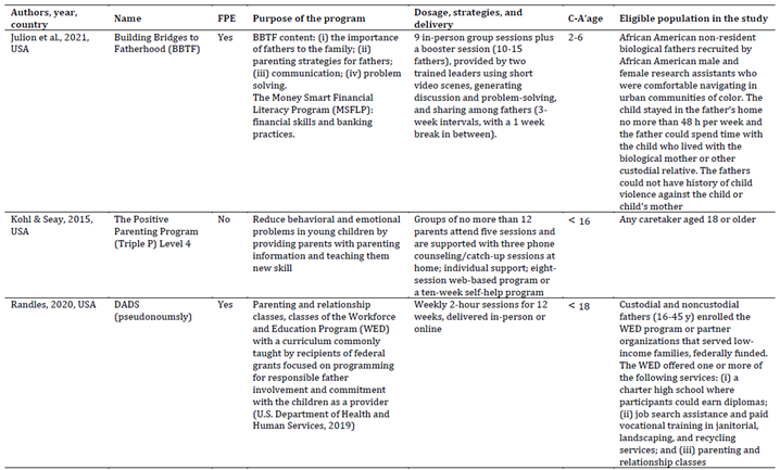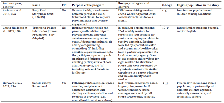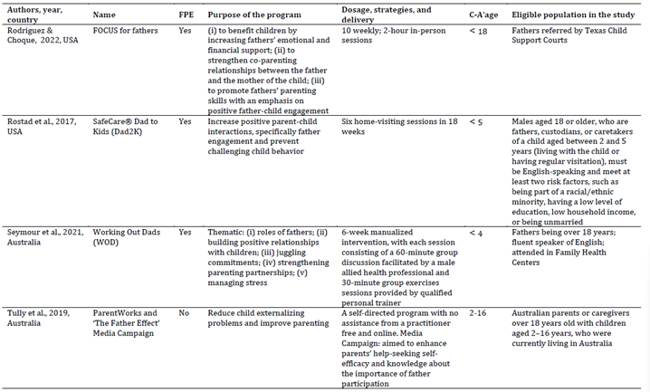 Note: FPE: Fatherhood program exclusively; C-A’age: Children and adolescent’s age.