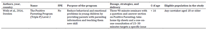 Table 1: Characteristics of the programs delivered for fathers in the studies