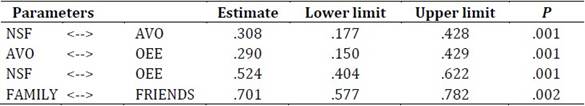 Table 4: Correlations and their 90 % confidence intervals by BCa of the Model 4