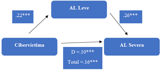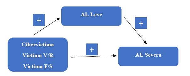 Figura 2: Modelo de mediación para las variables cibervictimización, autolesión leve y autolesión severa
