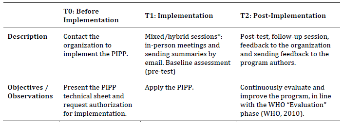 The PIPP was structured to be applied in three distinct phases (Table 2).