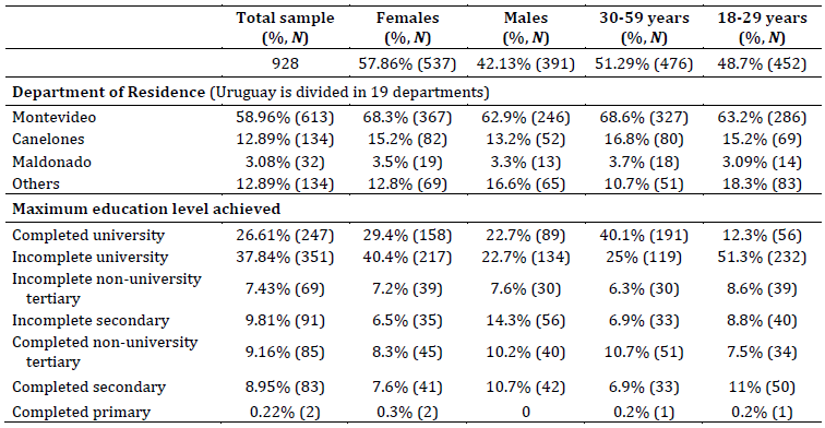 Note: Sociodemographic characteristics of the sample used to assess the association between age, sex, and cannabis acquisition sources with patterns of cannabis use and related consequences among Uruguayan residents, as well as on psychological distress, protective behavioral strategies (PBS), and cannabis use motives.