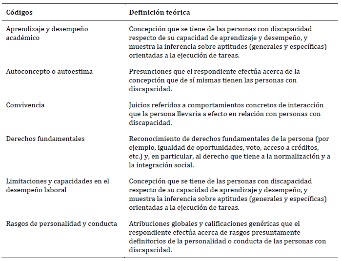 En cuanto a las categorías emergentes, en la categoría relacionada con el contexto, la percepción de los docentes releva la importancia de este como un factor que influye, positiva o negativamente, en el desarrollo integral de la persona en situación de discapacidad. Hallazgos previos sugieren que no existen personas discapacitadas, sino entornos discapacitantes (Díaz Velásquez, 2010). Resulta destacable considerar que los participantes no le atribuyen responsabilidad alguna a la persona en situación de discapacidad con respecto a su actuar social, sino al entorno, que no dispone de las oportunidades que la persona requiere. Se destaca así la percepción positiva que el docente universitario, formador de futuros profesores, tiene respecto del contexto en el que se desenvuelve el sujeto con discapacidad, se enfatiza el rol del entorno familiar, seguido del educativo y, finalmente, el social.