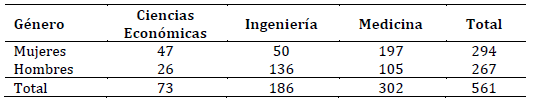 Tabla 1: Distribución de la muestra por género y área de conocimiento