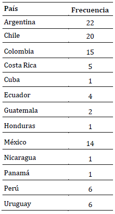 Tabla 1: Países de los estudios revisados