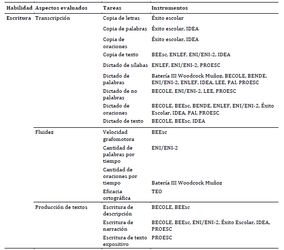 - Los resultados de esta revisión demuestran la necesidad de desarrollar instrumentos de evaluación de la escritura.