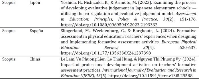En segundo lugar, se subraya la necesidad de programas de desarrollo profesional que fortalezcan las competencias docentes en evaluación formativa. En este sentido, Ramollo y Kanjee (2023) evidencian mejoras significativas en las prácticas de evaluación formativa en los docentes de colegios vulnerables de Sudáfrica, tras la implementación de un programa de desarrollo de capacidades en evaluación. Kaur y Lim-Ratnam (2023) analizan cómo las creencias y percepciones previas de los docentes influyen en la implementación de políticas nacionales sobre evaluación formativa en Singapur. Le Lam et al. (2024) investigan el impacto del desarrollo profesional en la evaluación formativa en Vietnam, y destacan cómo las expectativas de resultados y la autoeficacia de los docentes median la efectividad de las estrategias de evaluación formativa en el aula.