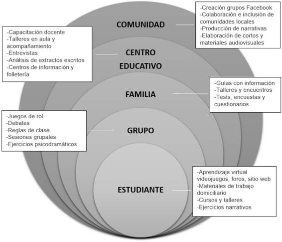 Figura 4: Tipo de actividades realizadas en los programas de intervención para el abordaje del acoso escolar desde un enfoque sistémico