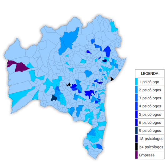 apenas 104 dos 417 municípios baianos (24,9 %) possuíam ao menos um psicólogo