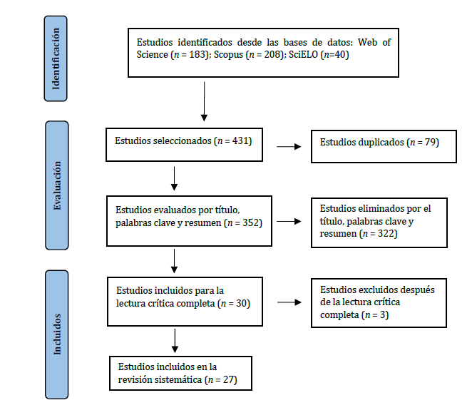 = 208), and SciELO (n = 40), yielding 431 records. After removing