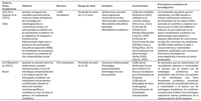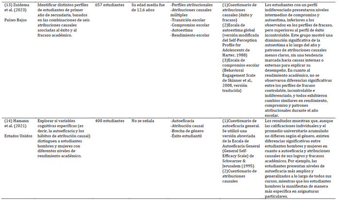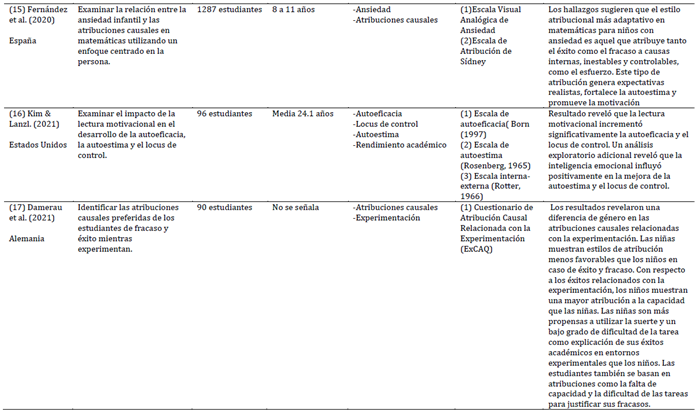 fracasos. Esta revisión sistemática analizó la relación entre atribuciones