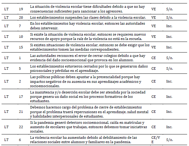 En primer lugar, la pandemia es vista como contexto principal de la situación de la CE y la VE. En las editoriales de ambos diarios sus autores identificaron el contexto de la pandemia como una causa principal del distanciamiento social y sus efectos en la comunidad escolar en el año 2022. Por ejemplo, Beraun-Vasquez et al. (2025) señalan que uno de los factores de la VE puede tener relación con la escasa interacción entre pares, reducida durante el confinamiento y que tras el retorno a la presencialidad fue difícil de retomar debido las políticas públicas que restringieron la actividad presencial en los establecimientos escolares chilenos. En esta línea, el desarrollo socioemocional se vio afectado por el distanciamiento social durante la pandemia (Orgilés et al, 2024), lo que generó dificultad en el desarrollo de las habilidades relacionales de los niños, niñas y adolescentes al volver a la presencialidad en 2022.
