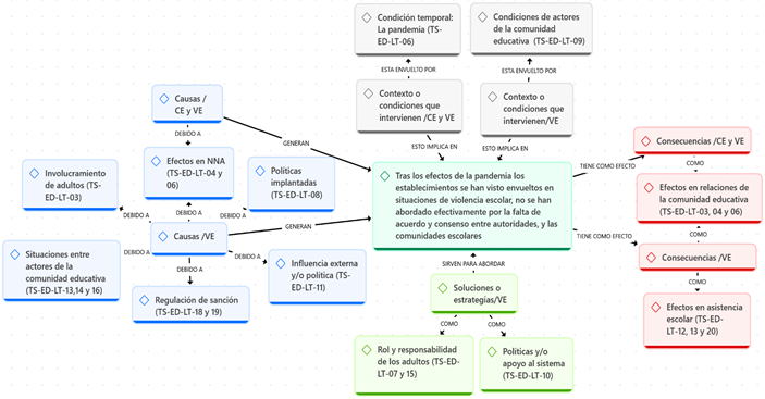 Nota: TS: Teoría subjetiva; LT: La Tercera; VE: violencia escolar; CE/VE: convivencia y violencia escolar. Fuente: elaborado en ATLAS.TI 25