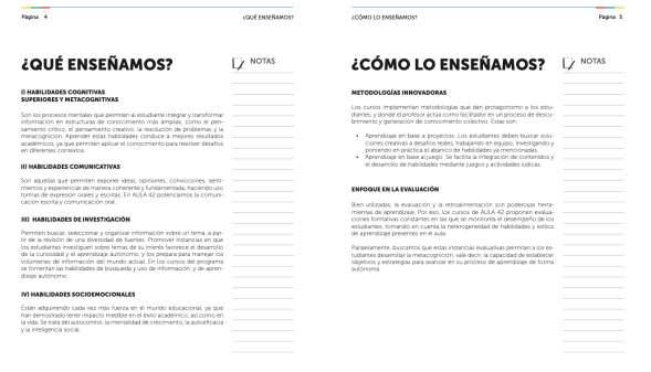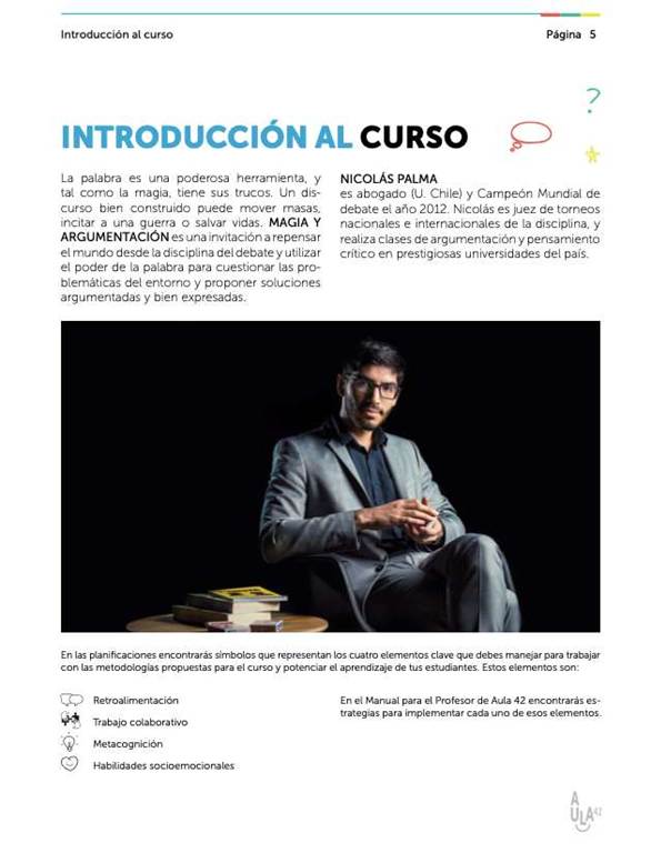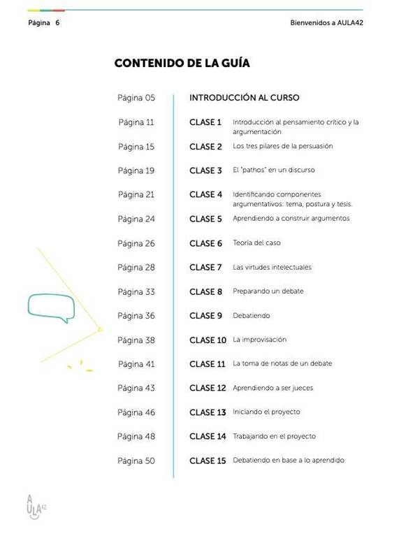 Los resultados preliminares de la implementación de las escuelas de verano facilitaron la consecución de recursos y, por ende, la expansión de la agenda educativa de la Fundación. En ese sentido, se crearon dos programas adicionales: Verano trampolín (un programa para promover la lectura en la primera infancia) y Aula 42 (un programa de formación a docentes en ABP). El presente artículo se centra en esta última propuesta. Aula 42 es un programa de formación a docentes en ABP (Educando Juntos, s.f.). El programa tomó los cursos más populares que se impartían en las escuelas de verano y los convirtió en programas curriculares para apoyar la enseñanza de contenidos temáticos en ciertas áreas del conocimiento. Así, por ejemplo, cursos como “La magia de la argumentación” y “Relatos del misterio” se convirtieron en programas curriculares para avanzar la enseñanza del español y la literatura en las escuelas. Además, este formato facilitó que los cursos se llevaran a escuelas que no habían podido acceder a los programas de verano. Este proceso de crecimiento llevó a la Fundación a expandir su cobertura geográfica a Colombia. Es así como, en 2018, Consejo de Curso implementó un proyecto piloto en dos colegios de Bogotá con el objetivo de validar los contenidos curriculares de algunos de los cursos del programa Aula 42.