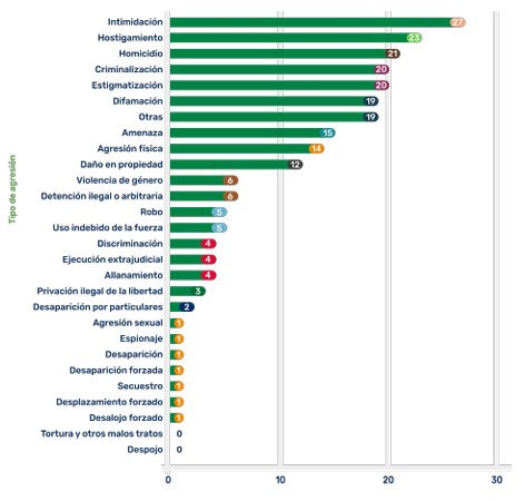 Figura 1: Tipos de agresiones a defensores de derechos humanos en materia ambiental