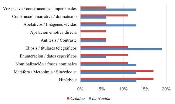 Figura 3: Empleo de recursos retóricos en La Nación y Crónica